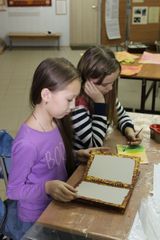 Обучающиеся пробуют самостоятельно «состарить» бумагу, написать каллиграфическим почерком фразу или свои инициалы. На занятиях в Студии каллиграфии и рукописной книги «Русская легенда» ребята знакомятся с русской вязью — одним из красивейших видов декоративного письма. Узнают о сплетениях букв — лигатурах, и пробуют, связав буквы своего имени, создать неповторимый знак. Также обучающиеся знакомятся с одним из самых утончённых и наиболее сложных каллиграфических инструментов — остроконечным пером. Ребята изучают такие понятия, как монограмма и вензель, и открывают для себя их торжественную красоту. С помощью остроконечного пера они создают вензели из собственных инициалов. Также изучают славянские и латинские шрифты, которые выполнялись ширококонечным пером. На занятиях обучающиеся узнают о том, как была создана славянская азбука, и кто стоял у её истоков. На примерах шедевров древнерусской каллиграфии ребята осваивают такие виды письма, как устав, полуустав, вязь и скоропись, которыми писали наши предки многие века. На практике знакомятся с техникой работы тростниковым и птичьим пером